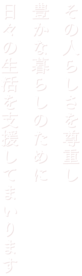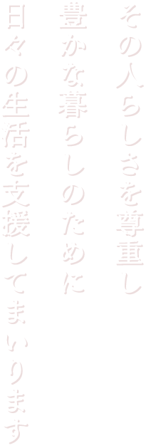 皆様の安心できる暖かい手となるよう最善を尽くし限りなく在宅で暮らせるよう支援させていただきます。