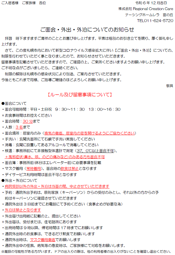 ②当面の外出に関しては通院以外は禁止とさせていただきます。